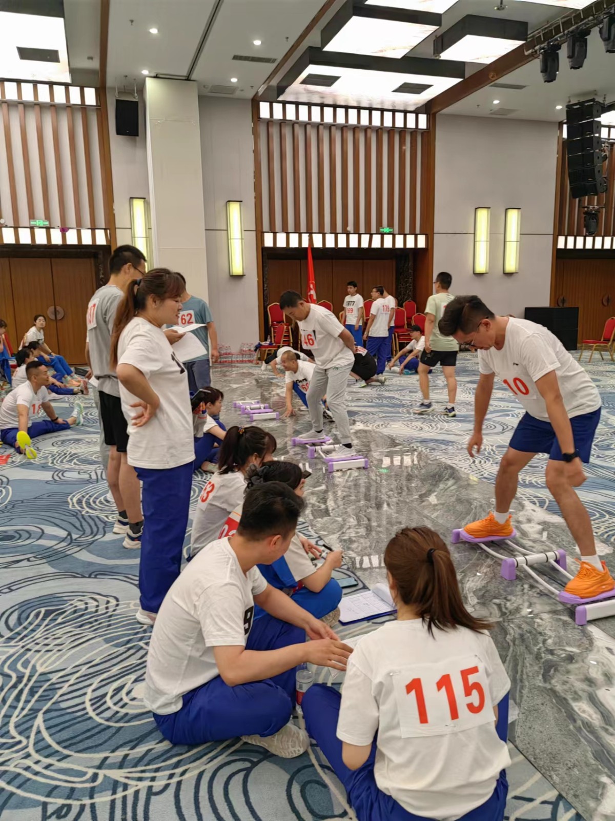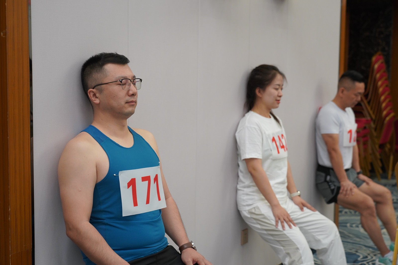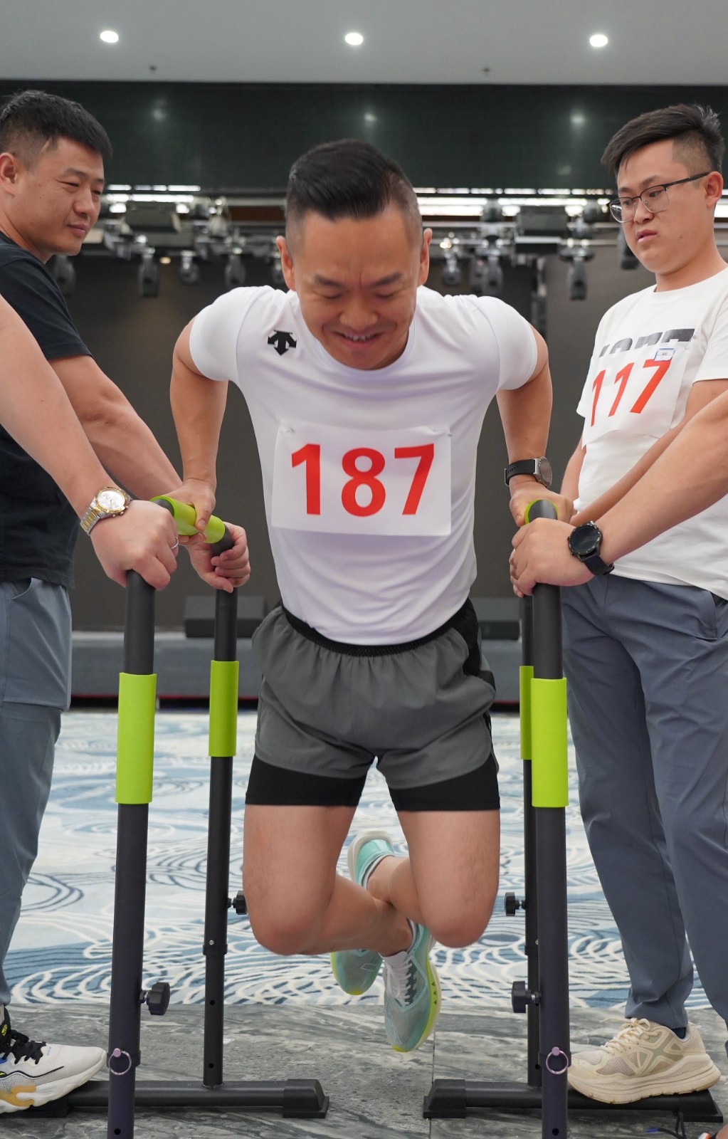运动会共设十一个项目,包括靠墙马步蹲、引体向上、平板支持、三分钟跳绳、双杠屈臂撑、一分钟站姿健腹轮、单杠悬吊、滑雪机开合、三分钟俯卧撑、三分钟呼啦圈、跑步(男子十公里、女子八公里)等。